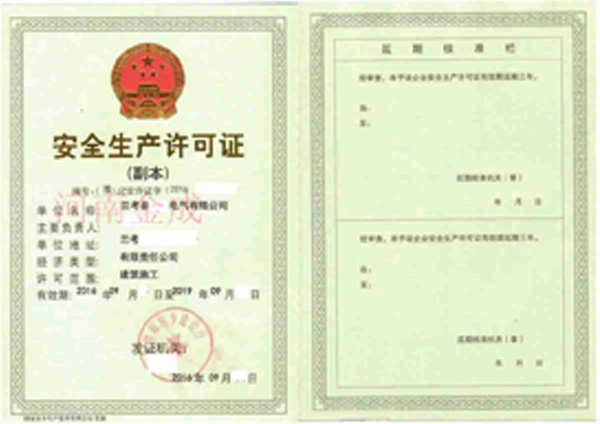 • 安全生產許可證副本